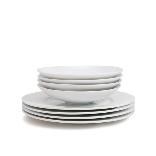 8 Piece White Porcelain Dinnerware Set (10 3/4" plates, 8" salad bowls)