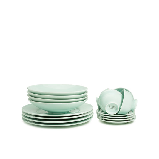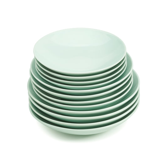 12 Piece Celadon Glazed Porcelain Coupe Bowl Set