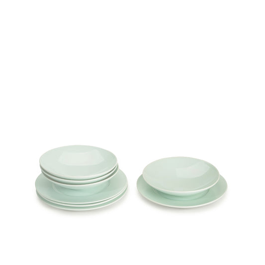 8 Piece Celadon Glazed Porcelain Dinnerware Set (10 3/4" plates, 8" salad bowls)